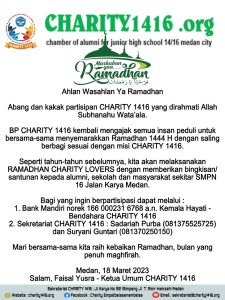 SAWIYAH : TERIMA KASIH CHARITY 1416 “Terima kasih CHARITY 1416. Terima kasih alumni SMP Negeri 14/16 Jalan Karya Medan yang